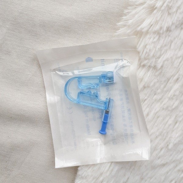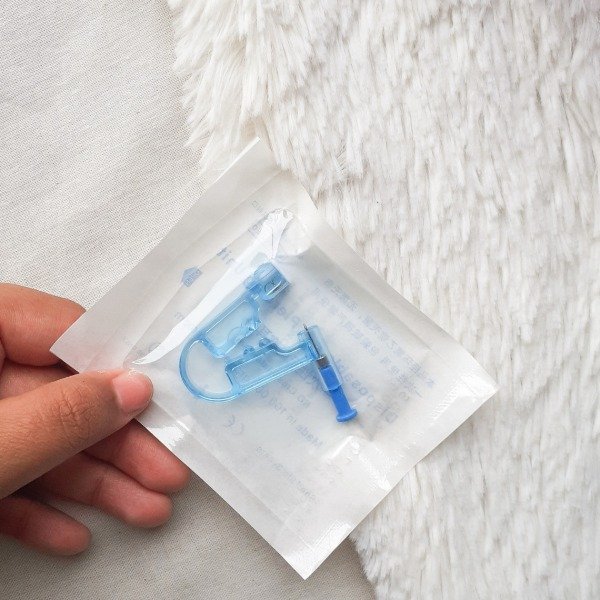 Contiene un dispositivo de plástico para hacer agujeritos y un abridor con strass de acero quirúrgico. Se recomienda solo usar en el lóbulo, podes volver a usarla pero no compartas el arito, solo la maquina. Si no te gusta el stras te recomendamos dejártelo igual unos días y después cambiarlo por otro de acero quirúrgico que te guste, para su cicatrización. La perforación se realiza muy rápido y por lo general no duele.