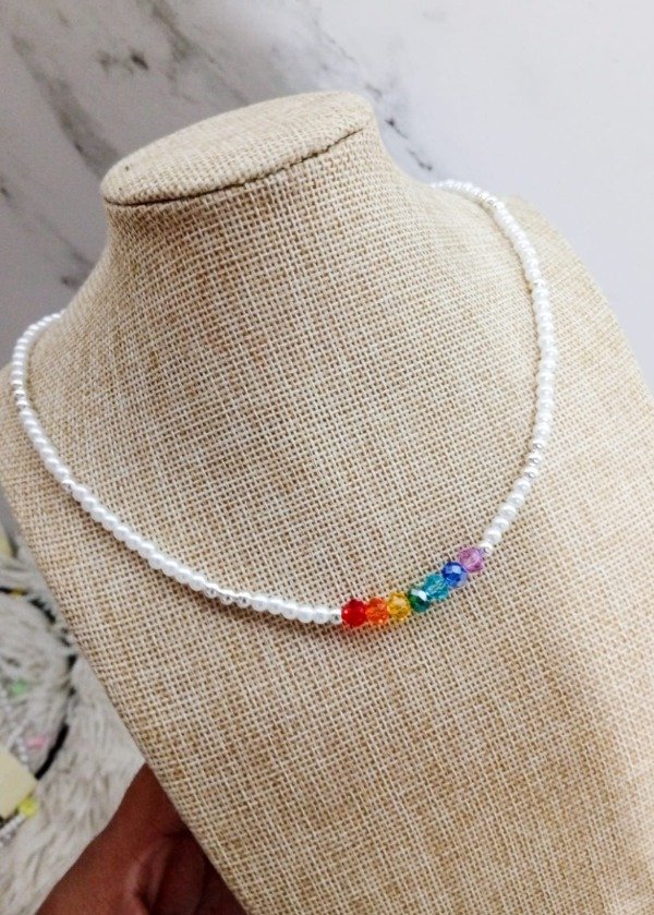Collar con perlas y dijes 7 chakras , medida 40cm