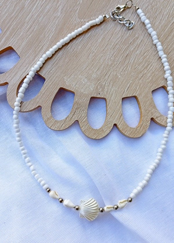collar perlas, caracolitos y dijes de mar