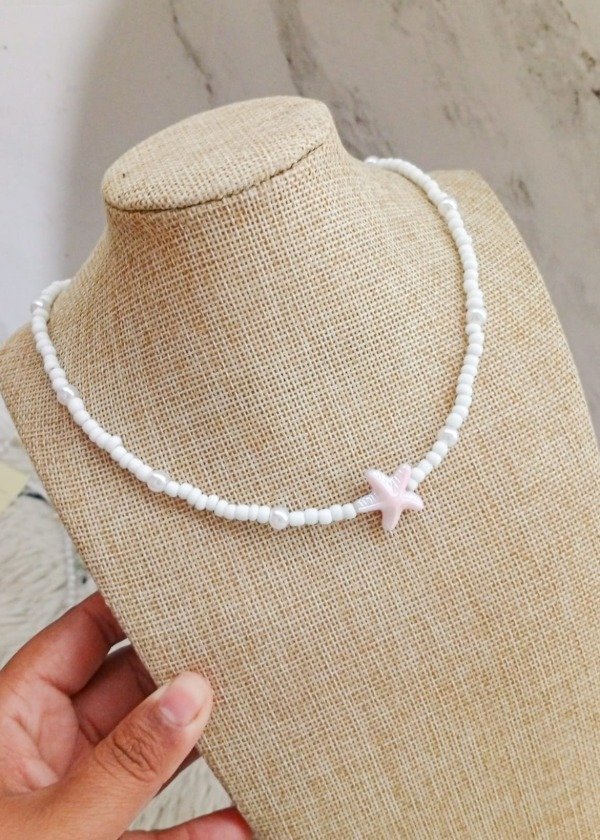 Collar con perlas y dijes verano, medida 40cm