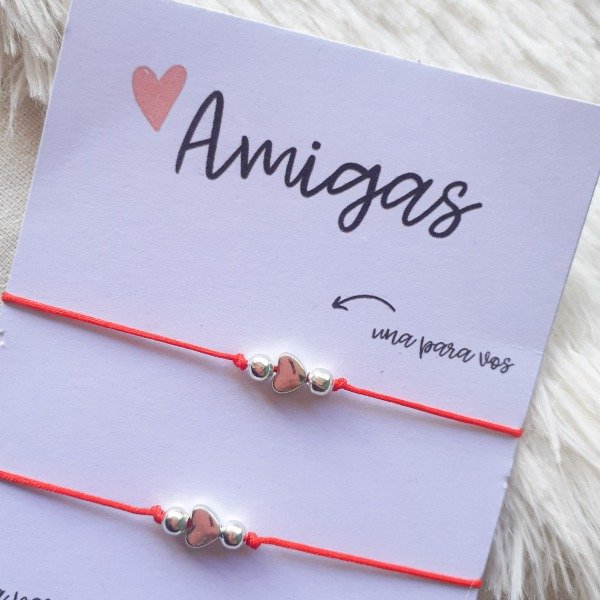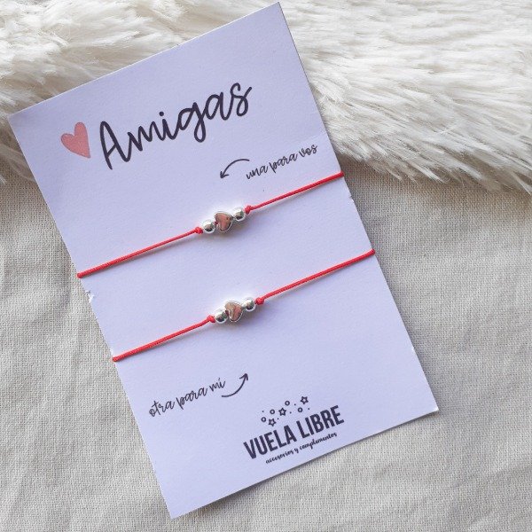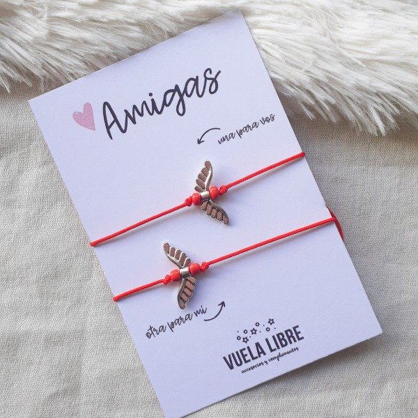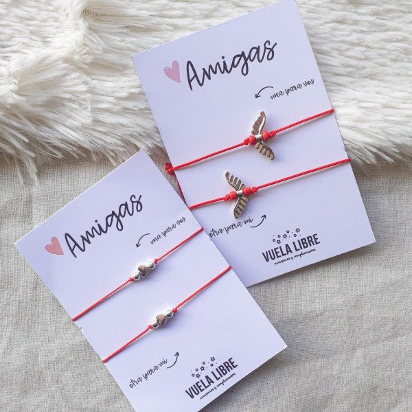 Material: hilo chino y dijes de fundición. Opciones: Corazón mini o Alitas.