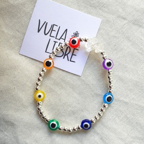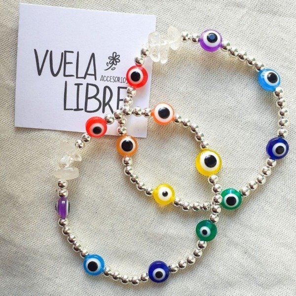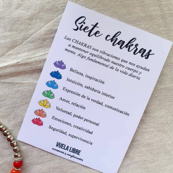 New in >> Pulsera chackras ! Contiene Ojitos turcos 🧿 con los colores de los chackras, también escallas transparentes de piedra natural! Es elástica. Incluye tarjeta con significado de cada chackra !